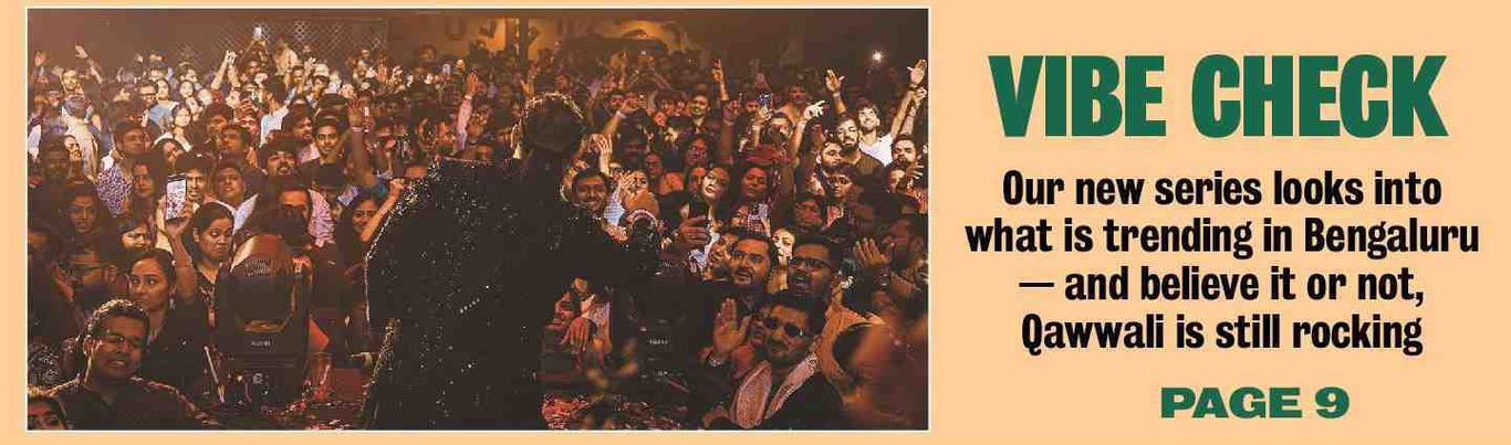 The article introduces a new series that explores trending topics in Bengaluru. Surprisingly, Qawwali music continues to resonate with audiences, remaining a popular and vibrant part of the city's cultural landscape. The article is found on page 9.Bengaluru now boasts its own qawwali band, Sukoon Waali Qawwali, started by Chandan. They host qawwali events at home. The band's popularity grew after social media shares, leading to public performances. They add a special touch by curating a traditional atmosphere, welcoming guests with gajras and ethnic dress code.
