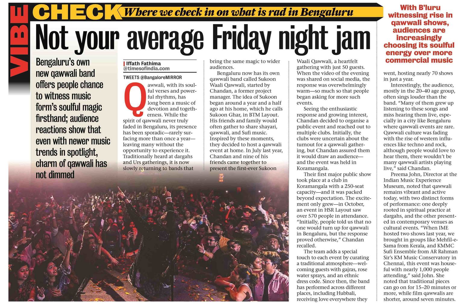 Bengaluru's own new qawwali band offers people chance to witness music form's soulful magic firsthand; audience reactions show that even with newer music trends in spotlight, charm of qawwali has not dimmed